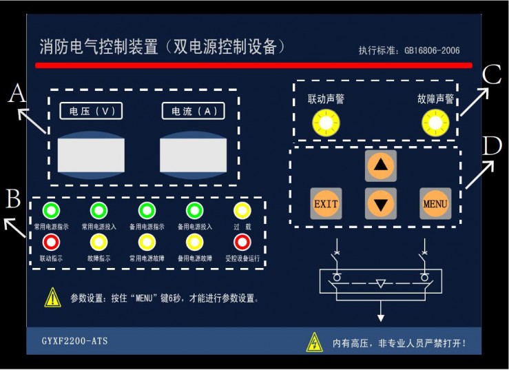 LSK-ATS 型消防電氣控制裝置(雙電源控制柜),是為了滿(mǎn)足消防電氣控制裝置(雙電源控制設備),符合GB16806-2006標準設計的一款產(chǎn)品,用于雙電源控制設備中的邏輯運算、自動(dòng)遠程信號處理、繼電器驅動(dòng)、電壓電流顯示及負載故障保護。